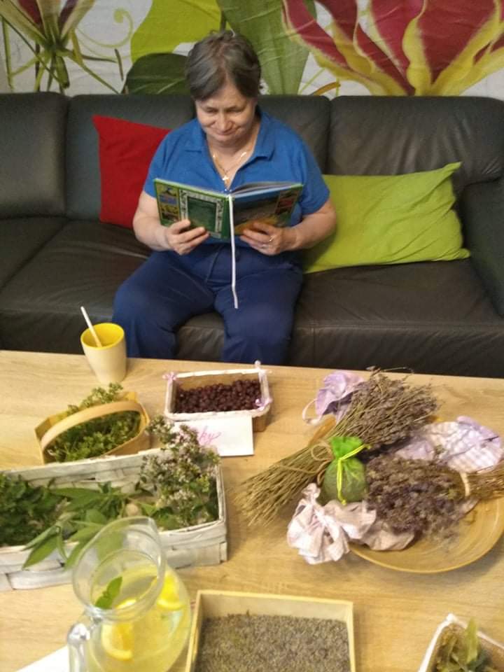 Pri práci v našom bylinkárskom klube ma napadala myšlienka, vymyslieť pre našich prijímateľov zaujímavý program o liečivých rastlinách. Oslovila som o spoluprácu kolegyňu Zdenku, ktorá vedie Literárny klub a kolegu Mira, ktorý vedie Kino klub.Spoločne pripravený program sme zrealizovali dňa 15.7.2021 v priestoroch sociálnej rehabilitácie a na terase, z ktorej sme mali pekný výhľad do našej záhrady plnej voňavých byliniek. Pripravené boli voňavé vrecúška s bylinkami, osviežujúce ovocno–bylinkové nápoje, zdravé čajíky, ktoré každý mohol ovoňať a ochutnať.Nechýbala tam ani výstavka kníh, časopisov o liečivých rastlinkách k nahliadnutiu a na spestrenie prostredia. Zazneli tam aj melodické piesne, plné krásnych slov a melódii o bylinkách napr. levanduli, lipe, škorici, majoránku a šípke. Tieto piesne mnohým boli známe a tak sme si aj spoločne zaspievali. Klientov sme vniesli do sveta vôní, chutí,romantiky, príjemnej hudby a výborného relaxu.Zaznelo tam aj poučné hovorené slovo o význame a liečivej sile tej-ktorej bylinky, čo klientov veľmi zaujalo. Nakoniec sme si všetci zatancovali a tešili sa z pekne prežitých chvíľ. Tomuto stretnutiu predchádzali vychádzky za bylinkami v prírode, po lúkach, ich zber, sušenie a uskladnenie. Takéto a podobné stretnutia budeme častejšie realizovať a obohacovať svoje poznatky o liečivých rastlinách a ich využívaní. Všetci dobre vieme, že rastlinky a bylinky majú zázračnú moc. Liečia nielen telo, ale aj dušu. Podľa starého príslovia sa na každú chorobu nájde bylinka. Veď zdravie je to najcennejšie čo máme.