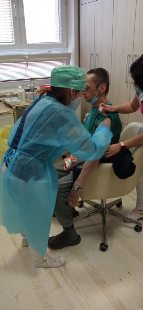 Dňa 26. februára 2021 sa v našom zariadení uskutočnilo prvé kolo očkovania proti Covid – 19, na ktoré sme všetci netrpezlivo čakali. Prijímateľov a časť zamestnancov prišla zaočkovať Výjazdová očkovacia služba z Fakultnej nemocnice J. A. Reimana v Prešove. Očkovalo sa vakcínou firmy Pfizer/BioNtech. Prijímatelia boli odvážni, injekcie sa nebáli a všetci spolu veríme, že očkovanie nám prinesie o trochu viacej slobody a nádeje na život, ktorý sme žili pred pandémiou. Druhé kolo očkovania nás čaká o 28 dní.