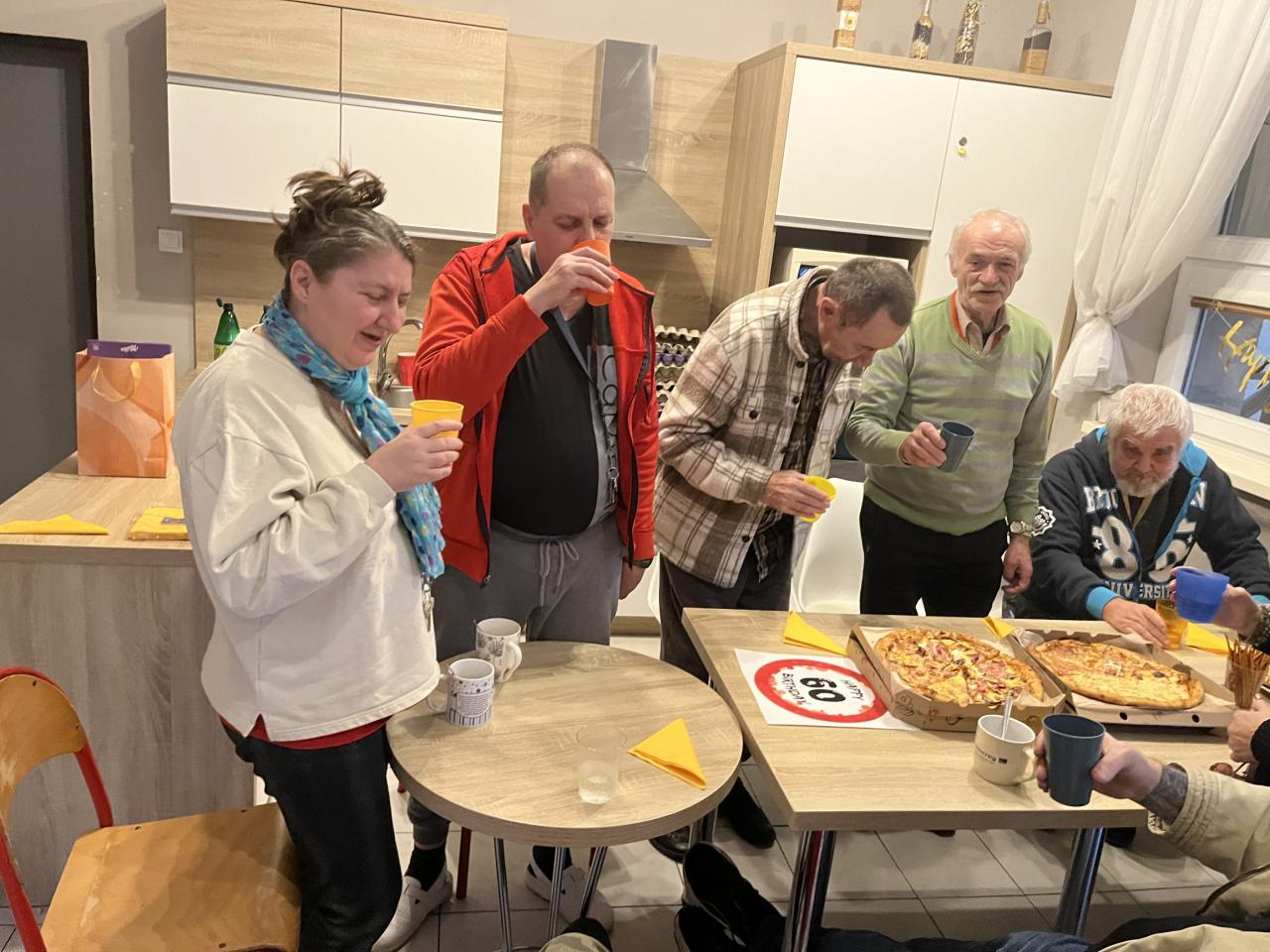 V našom zariadení sme dnes mali mimoriadnu udalosť. Náš prijímateľ Jozef Koky prežíval výnimočný deň. Oslavoval svoje 60. narodeniny. Spoločne s koordinátorom sme mu pripravili krásnu oslavu, na ktorú dúfame, nikdy nezabudne. Sladkosti a pizza, to bol vrchol dnešného dňa. Pozvaní hostia zablahoželali oslávencovi a tiež si pochutnali na pripravených dobrotách.